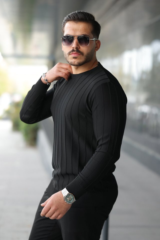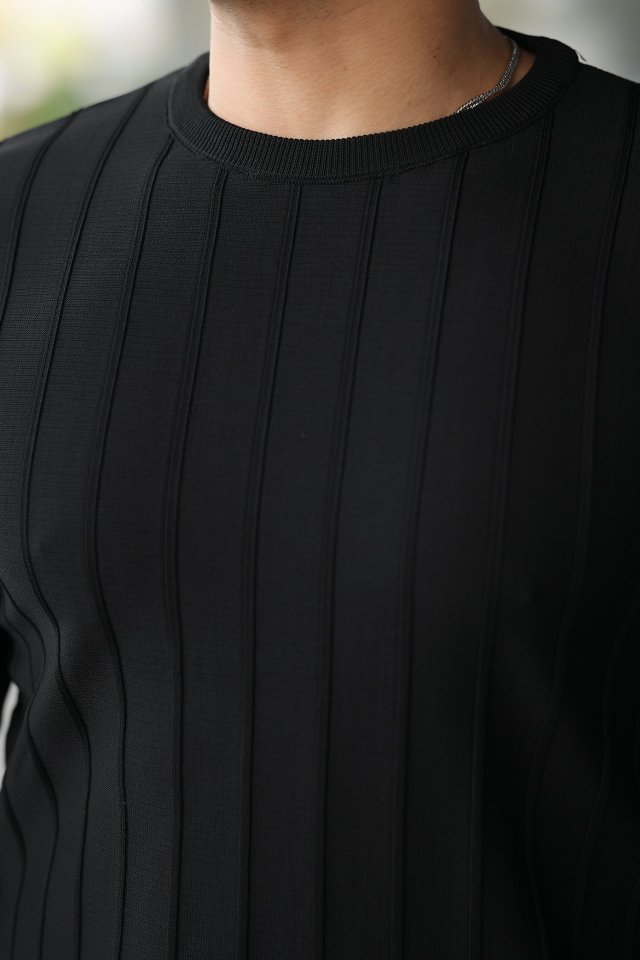 Erkek Bisiklet Yaka çizgi Kabartmalı Uzun Kollu Triko