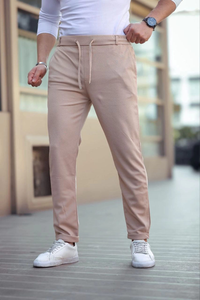 Erkek Diagonel Mikro Dokulu Cepli Beli Lastilki Pantolon - Kahverengi