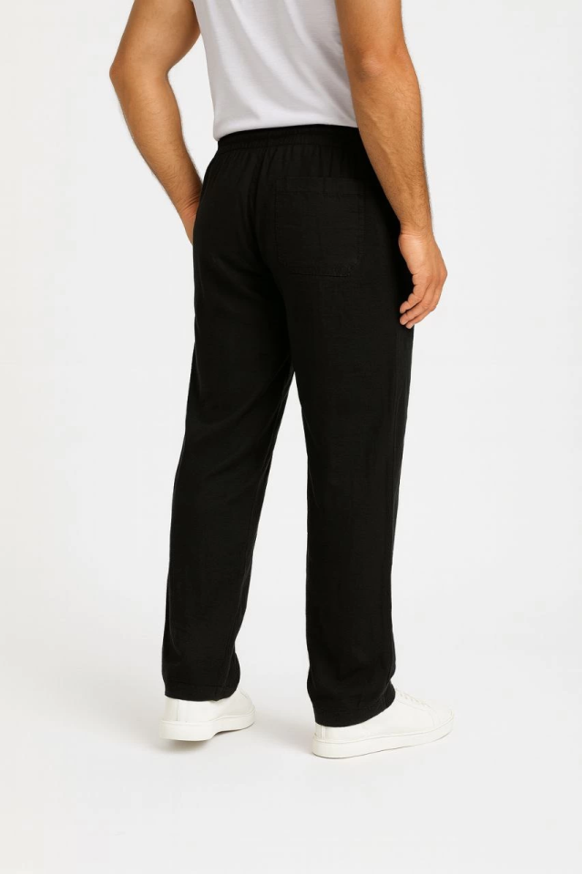 Erkek Keten Pantolon – Cepli, Beli Lastikli Ve Bağcıklı, Nefes Alan Rahat Kalıp, Yazlık Ve Baharlık Günlük Giyim, Şık - Konforlu Boru Paça Model - Siyah