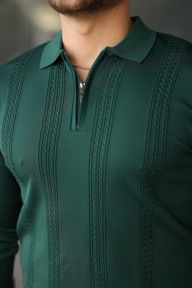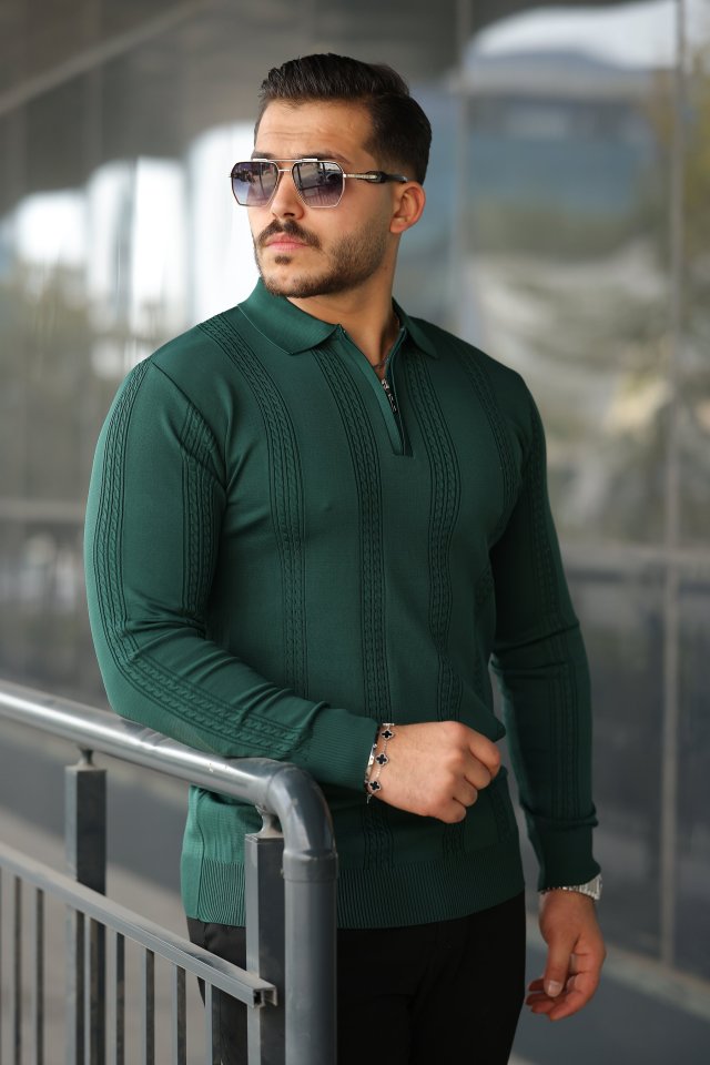 Erkek örgü Desen Fermuar Yaka Uzun Kollu Triko