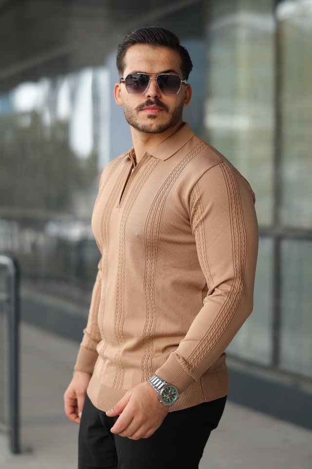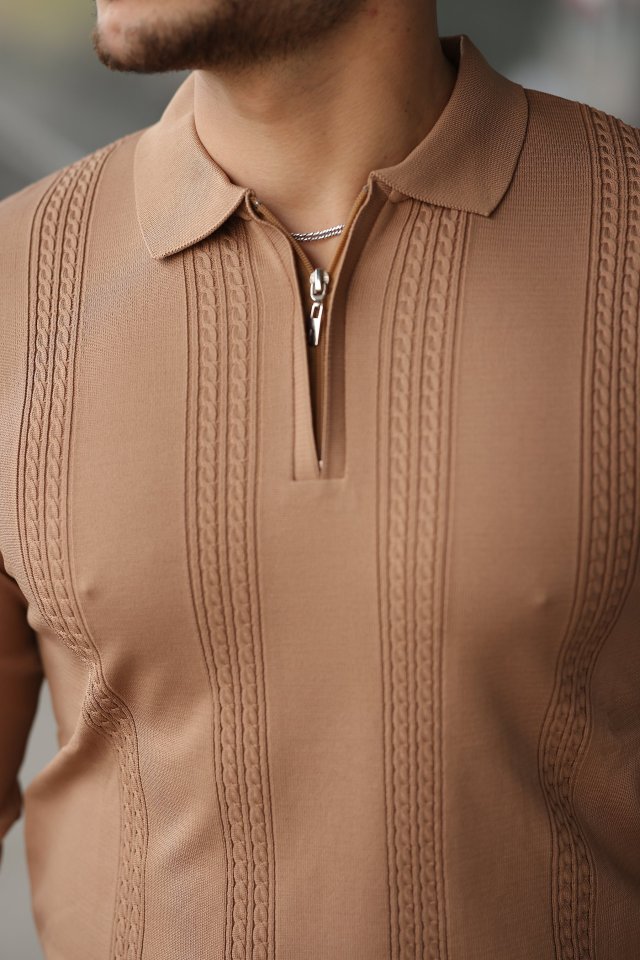 Erkek örgü Desen Fermuar Yaka Uzun Kollu Triko
