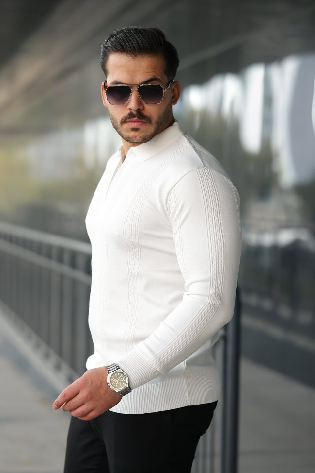 Erkek örgü Desen Fermuar Yaka Uzun Kollu Triko