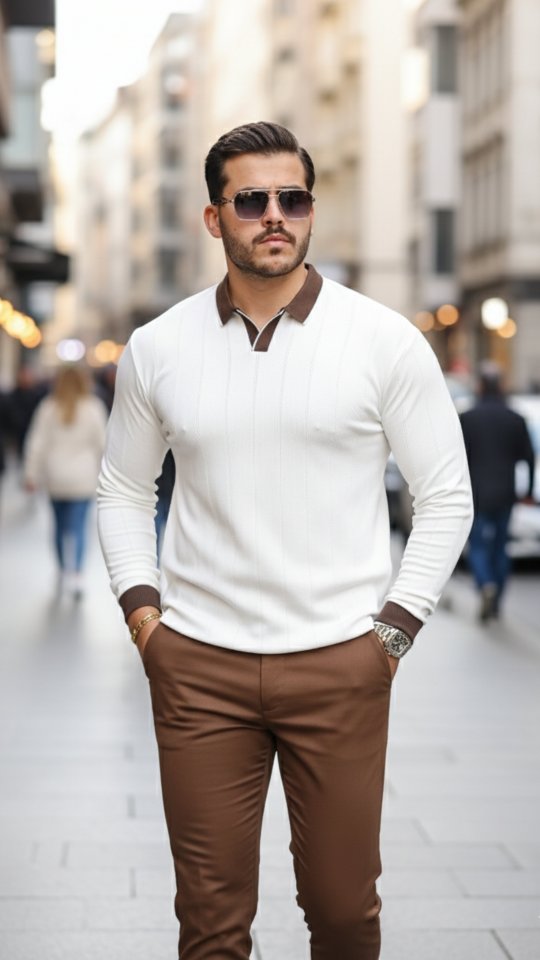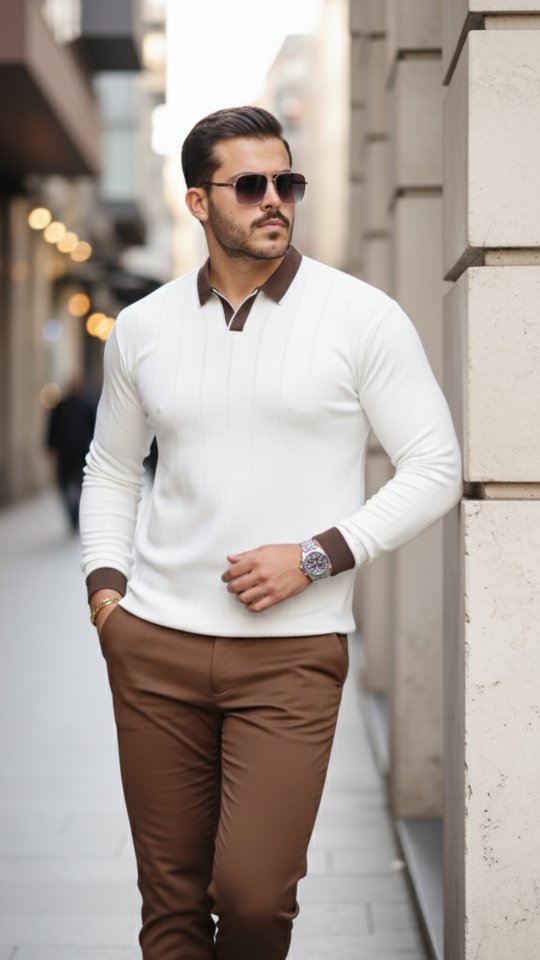 Erkek Renkli Yaka Manşet Uzun Kollu Triko